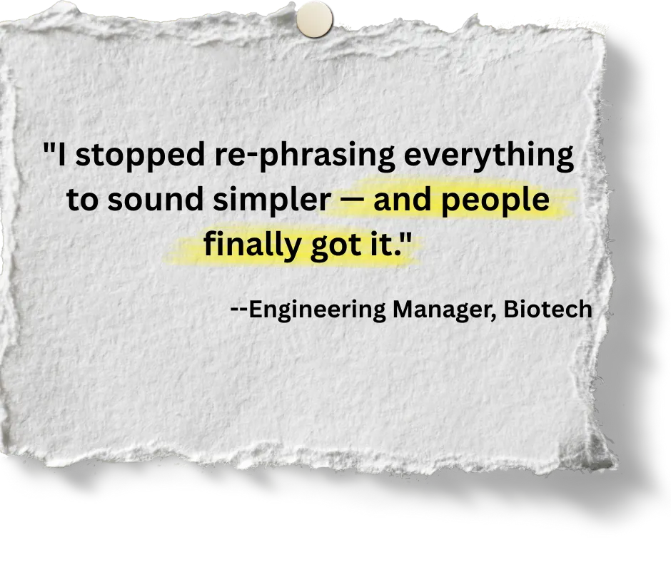 Mid-career engineers, scientists, clinicians, and analytical professionals who produce solid solutions but struggle to gain traction.